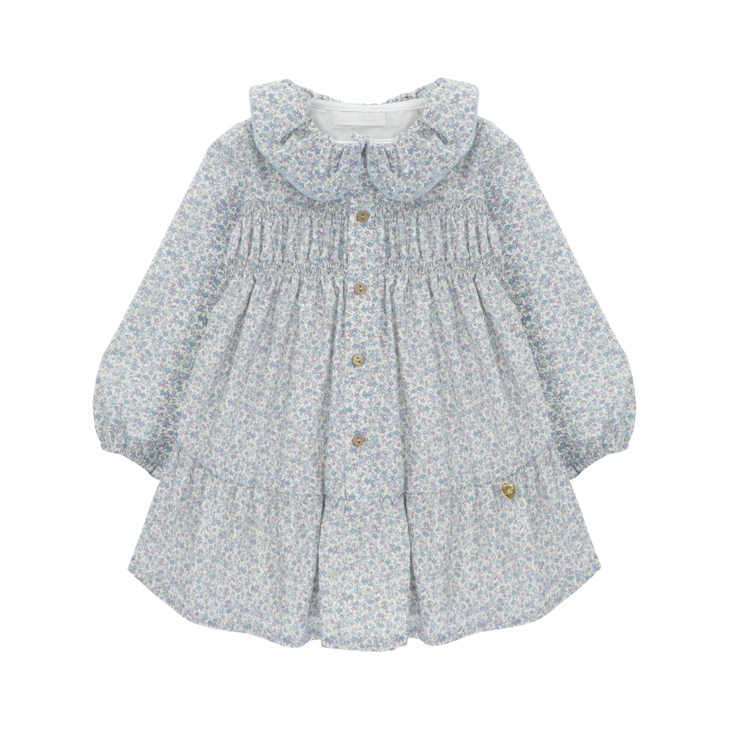 Blue Floral Ruffled Dress