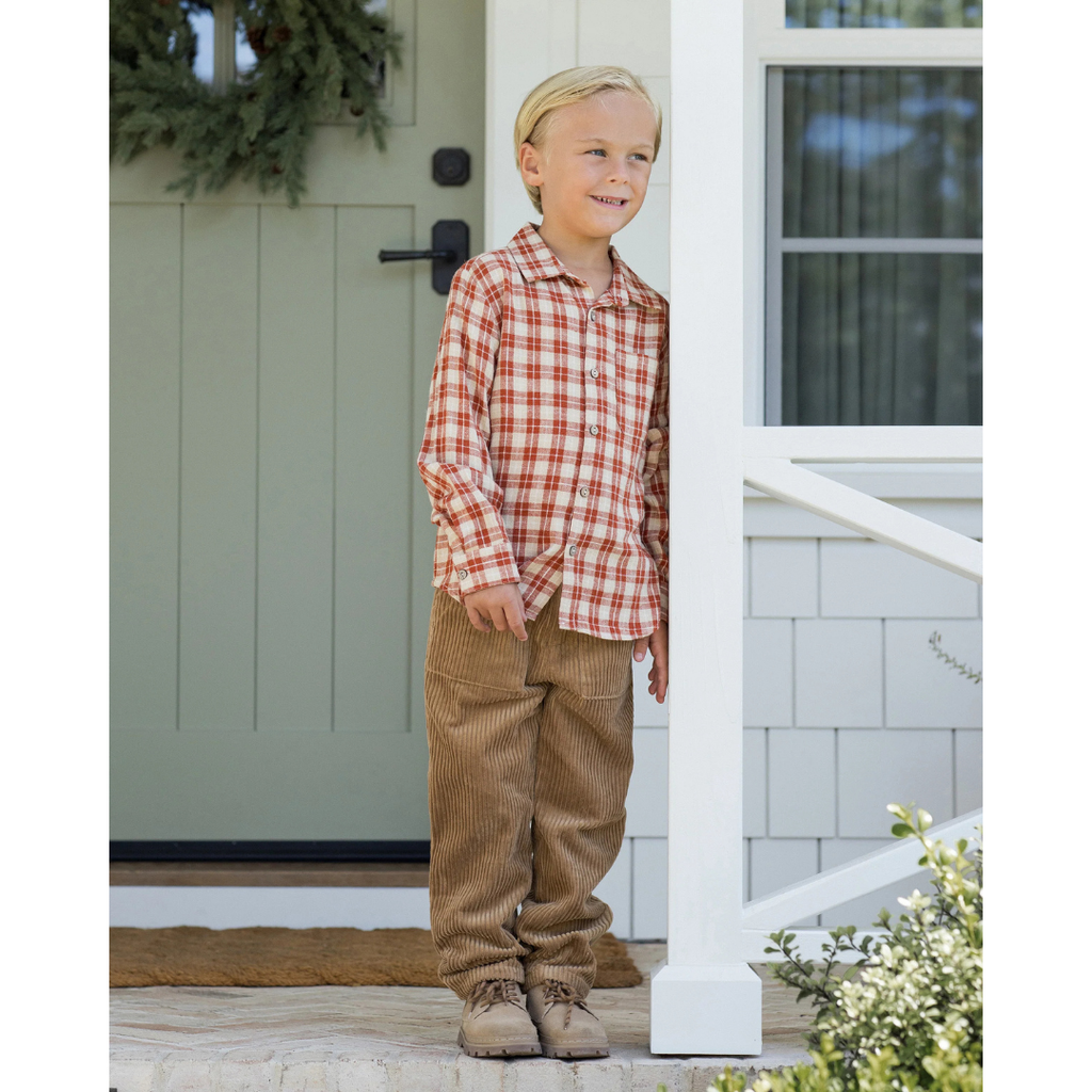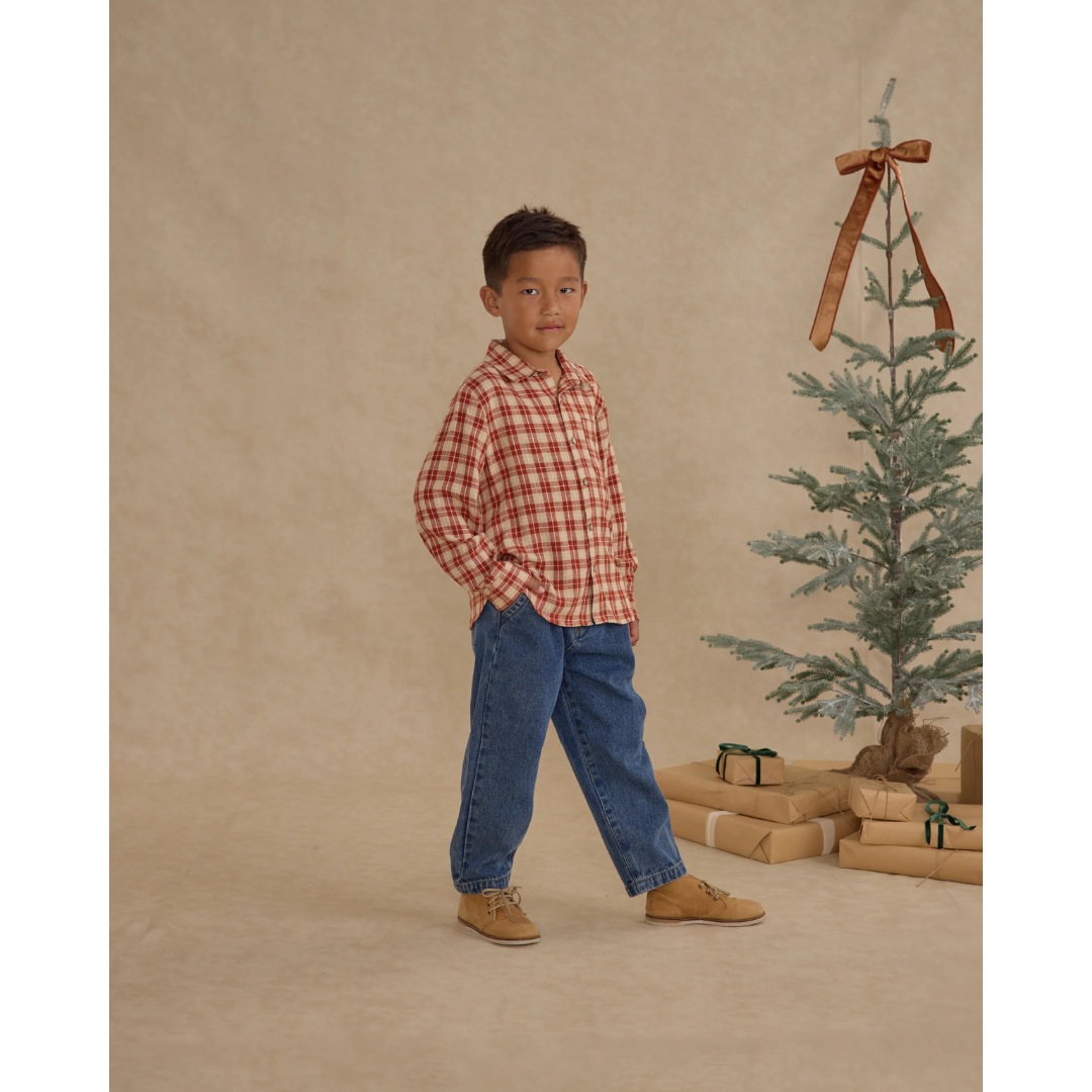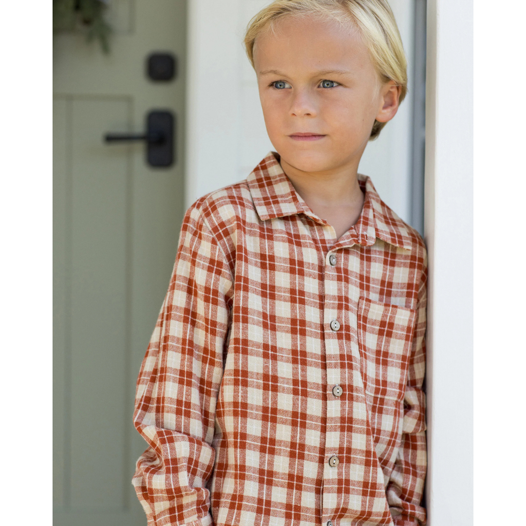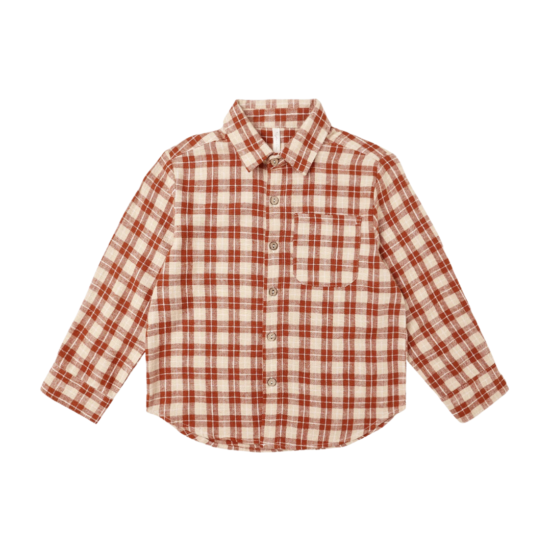 A collared button-up shirt with long sleeves and a tailored chest pocket—an effortlessly classic staple for every wardrobe. Featuring a 'red plaid' print on a 'red' hue.