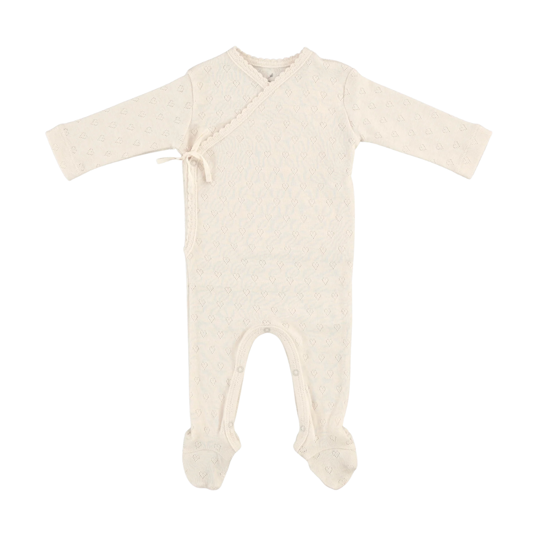 Bebe wrap footie in the softest organic cotton pointelle features a wrap opening, long sleeves, covered toes, and snaps for an easy change. This overall is the ultimate item for all babies and more especially for newborns.