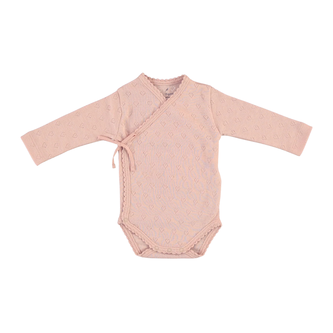 The Bebe wrap onesie is the ultimate item for all babies, and especially for newborns. Extremely soft onesie crafted from heart pointelle organic cotton, snaps for an easy change, and long sleeves to give extra comfort and coziness to the little ones.