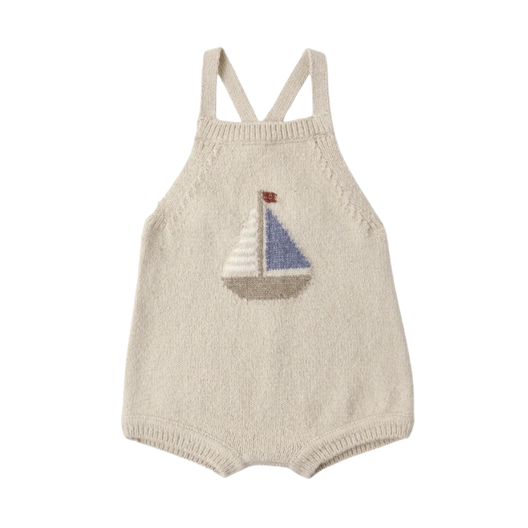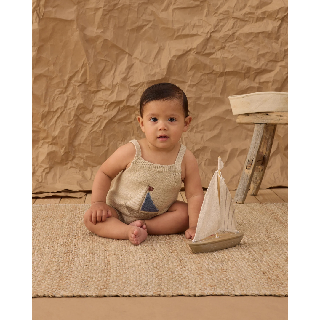Perfect for warmer weather, the Fisher Romper is a simple and easy look for your little ones. Designed with ribbed criss cross straps and coconut buttons.
