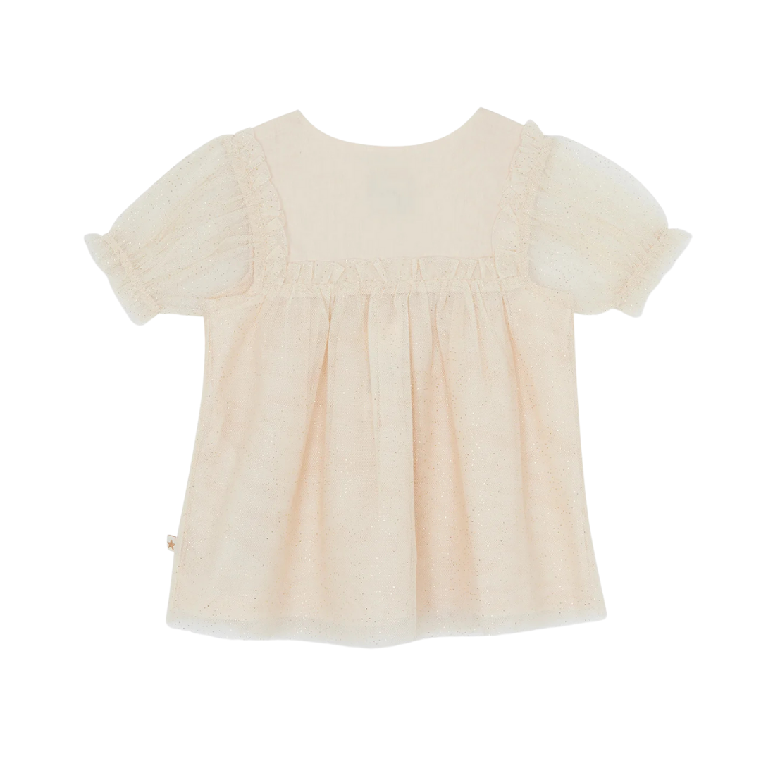 The Emma dress from the "Winter Tales" collection is a delight for little dreamers. With its glittery tulle and its Button Pearl, she shines with a thousand lights! Its Lining Sweet cotton promises comfort and cuddling. Ideal for a magical day, it is worn with Tights And boots for a magical look all winter.