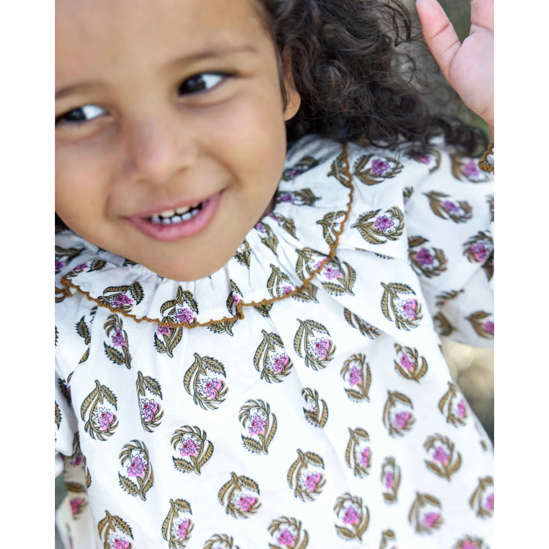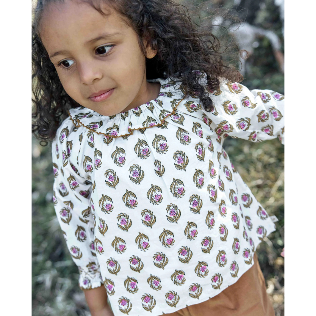 The Solene blouse from the "New Barn" collection is a country dream for little girls. With its delicate flowers and its Ruffled collar, She invites a joyful dance in the meadows! Elastic wrists add a practical touch, while thePrint At the stamp recalls the craft traditions of the Great West. Perfect for a stylish and comfortable adventure in sweet cotton.