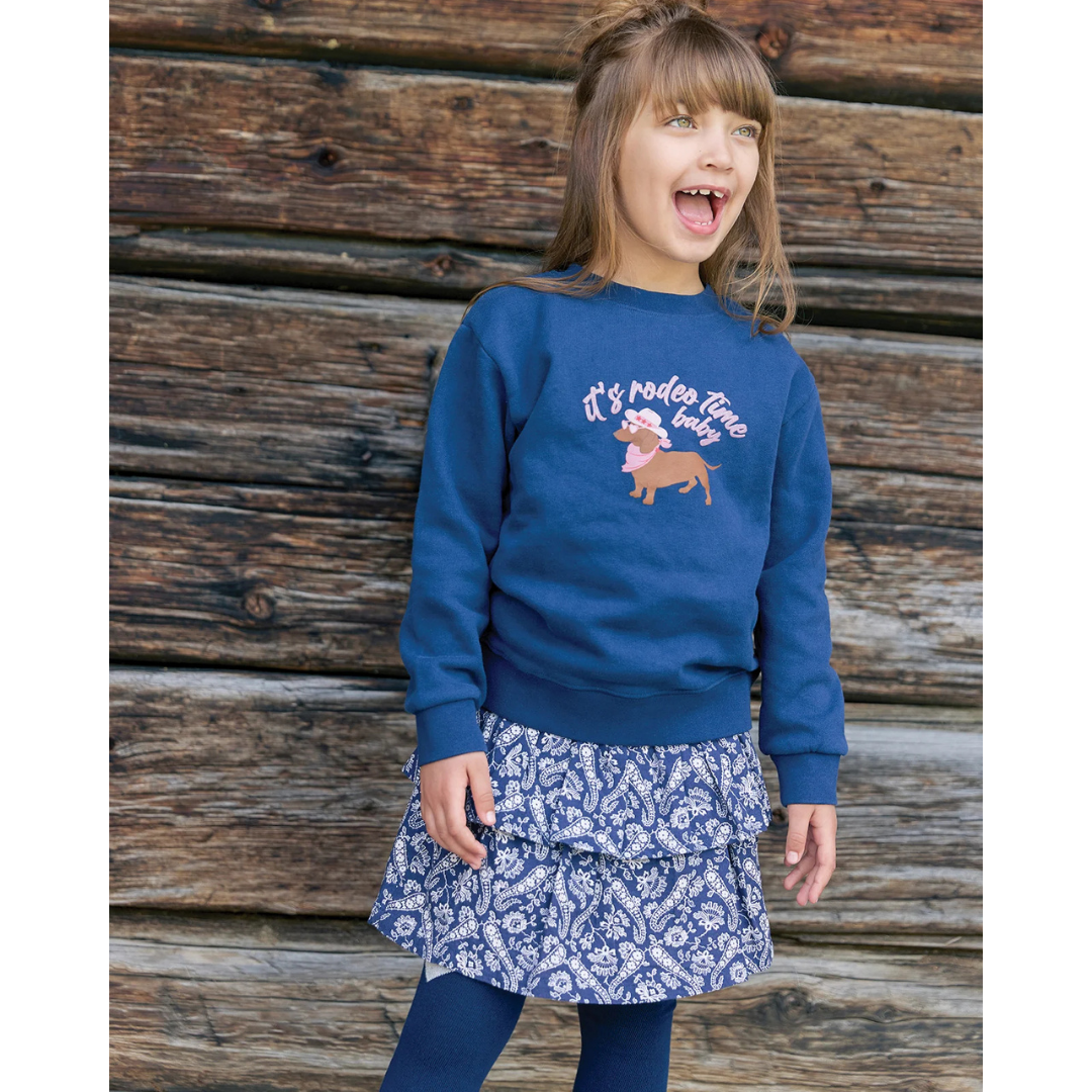The Bali skirt, with its bandana pattern, is a nod to the cowboy spirit of the "New Barn" collection. In Blue raw, it is perfect for little adventurers with its elastic and gathered waist, offering comfort and style! Ideal for twirling thanks to its two Ruffles, this Skirt in soft cotton is a must-have piece for a chic western look. Wear with ankle boots for an even more daring style!