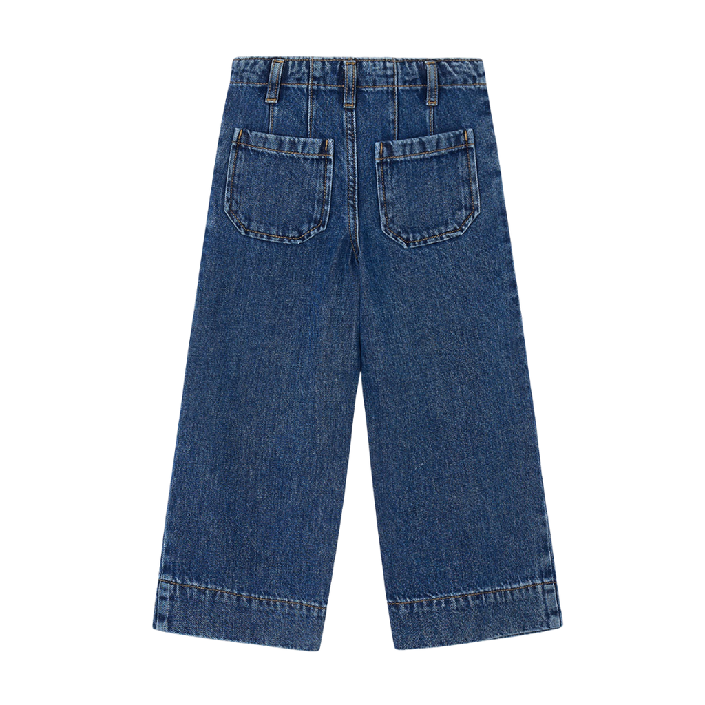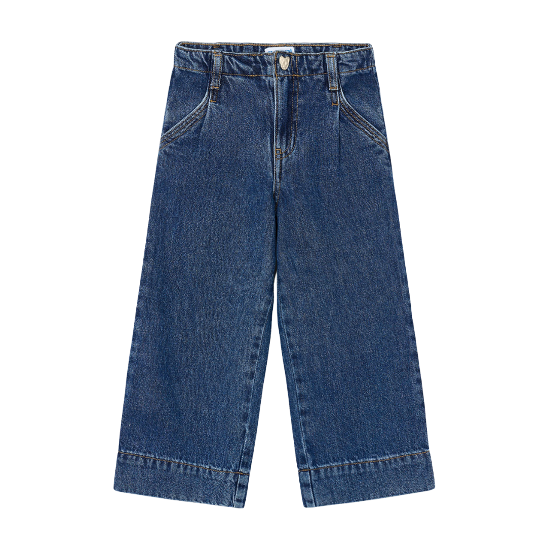 Flared pants with a wide hem, adjustable elastic waistband with buttons for a better fit, pleated design and functional front pockets.