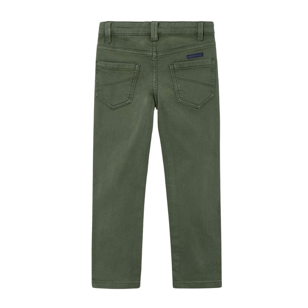 Classic straight-leg trousers with a regular fit, button and zip fly, adjustable elastic waistband with buttons for a better fit, functional front pockets and functional back pockets.