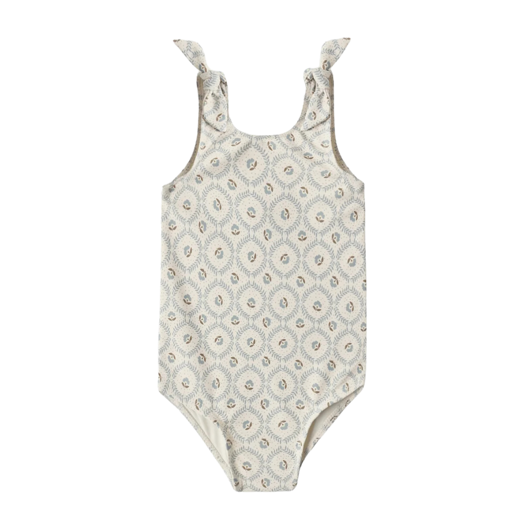 The Millie One-Piece features fixed knotted straps and is the perfect go-to bathing suit for your little one! Featuring a ‘green fleur' print on a 'natural' hue.
