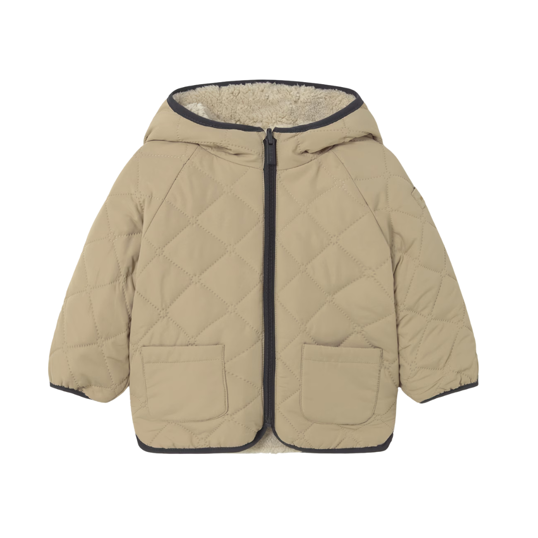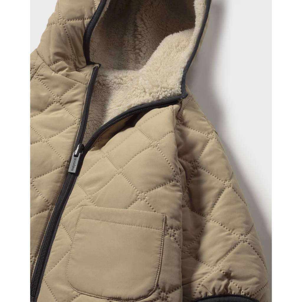 Padded jacket featuring a hood, zip closure down the front, two front pockets and a faux fur lining on the inside.