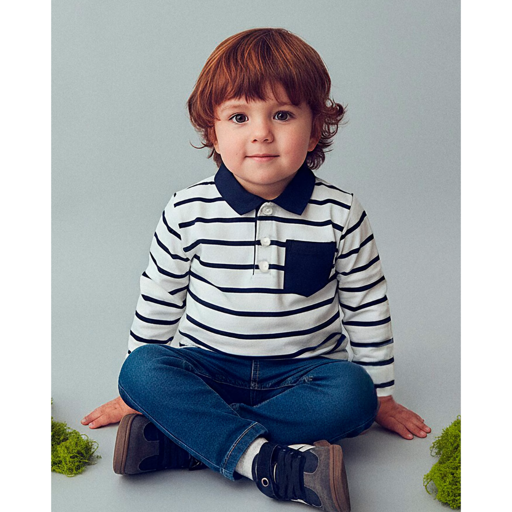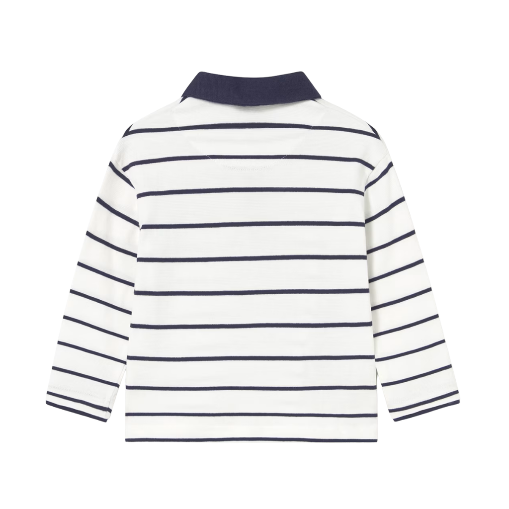 Long-sleeved polo shirt with a contrast polo collar, button-front closure and functional front pocket.