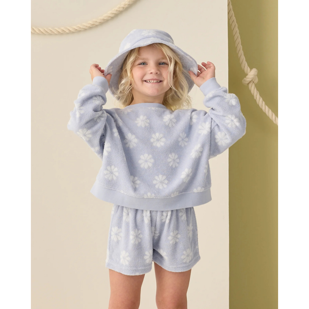 This bucket hat is the perfect accessory for any summer look while keeping you protected from the sun. Featuring a ‘periwinkle daisy' print on a 'periwinkle' hue. Enjoy sunny beach days in this retro floral look.