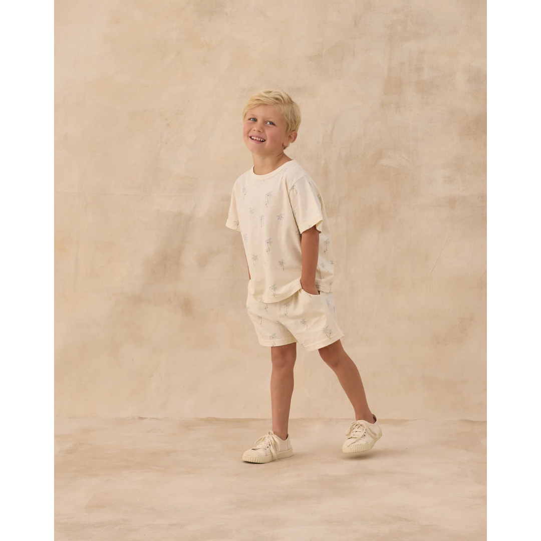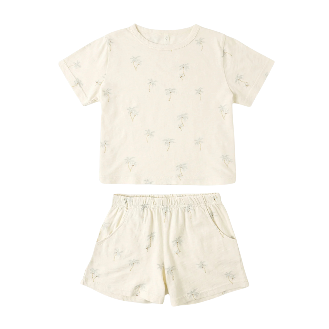 This play set includes a short sleeve top and coordinating pocketed shorts - your kids will have fun in this look all season long!Featuring our 'palms' print on our 'natural' hue.
