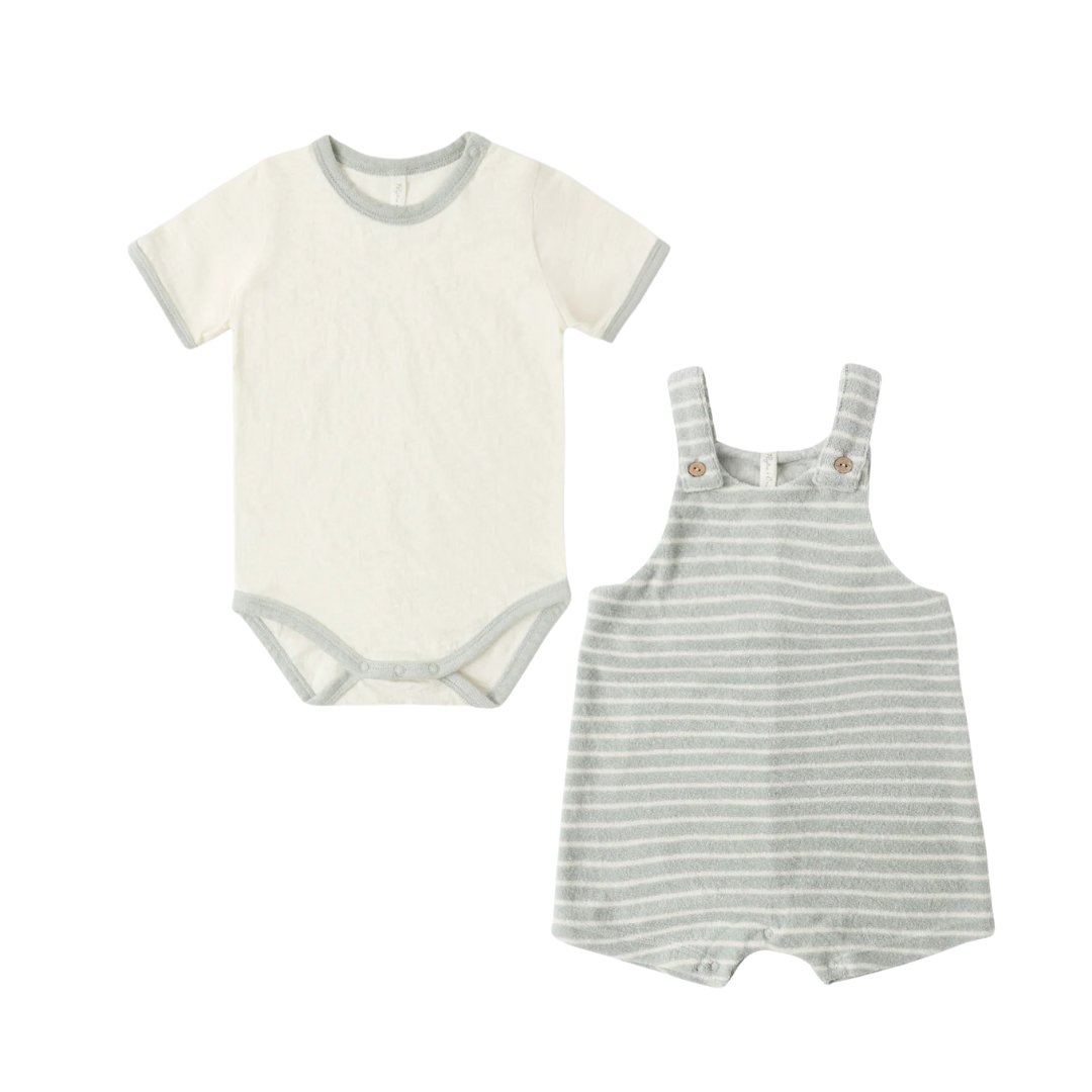 The sweetest summer look for your little one. The bodysuit features contrast ribbing and snaps at the shoulder and bottom for easy changes. The overall is designed with button straps and bottom snaps for easy changes.