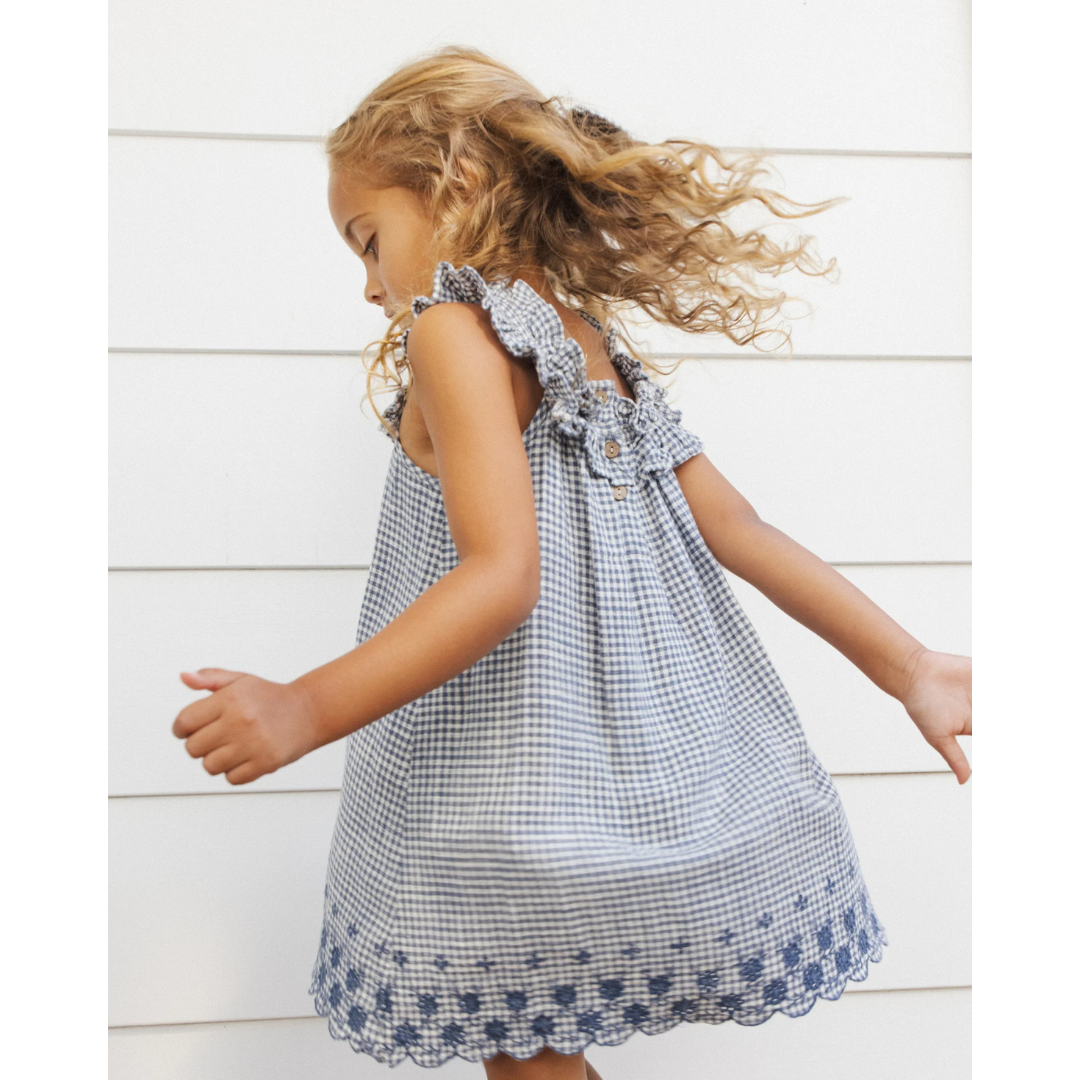 Lenon Dress in Marine Gingham