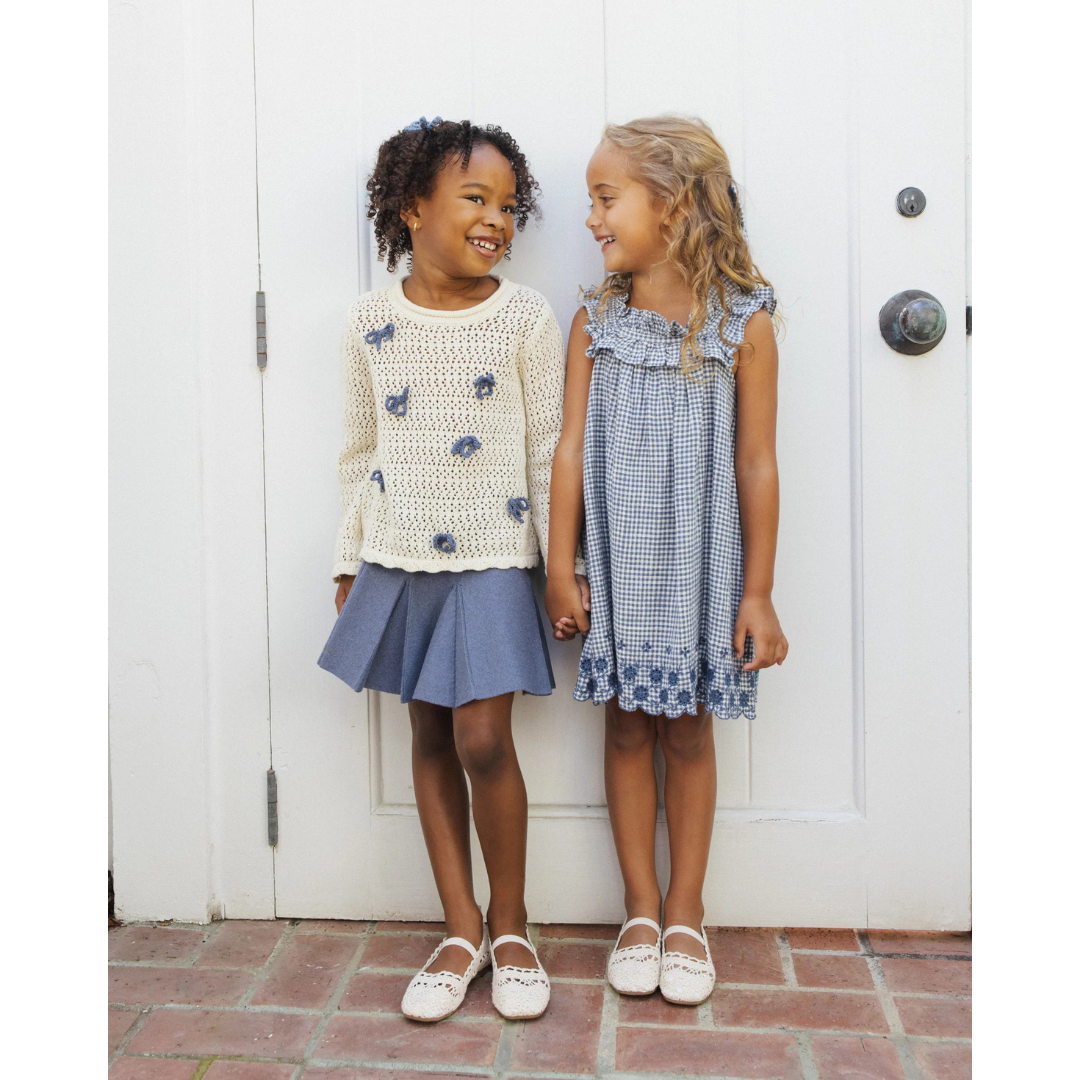 With a ruffled neckline and scallop eyelet embroidery, the Lennon Dress effortlessly welcomes spring.