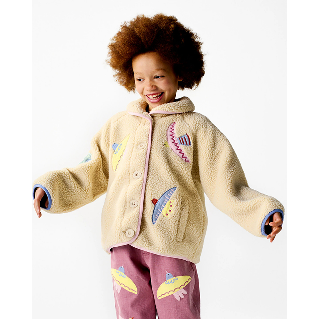 A love for animals can take wing at any age. This fleece is made from recycled materials and embroidered with soaring doves – a symbol of peace. The jacket features graphic embroidery,long sleeves, a tonal zipper, contrast trims and zipper fastening.