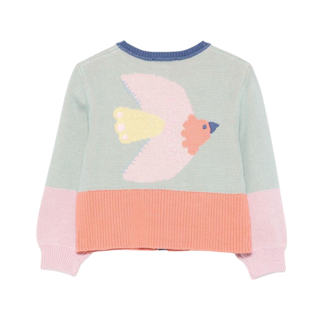 A love for animals can take wing at any age. This soft, organic cotton-and-wool blend cardigan is embroidered with a soaring dove – a symbol of peace. The cardigan features colorblocking elements, a crewneck and button fastening.