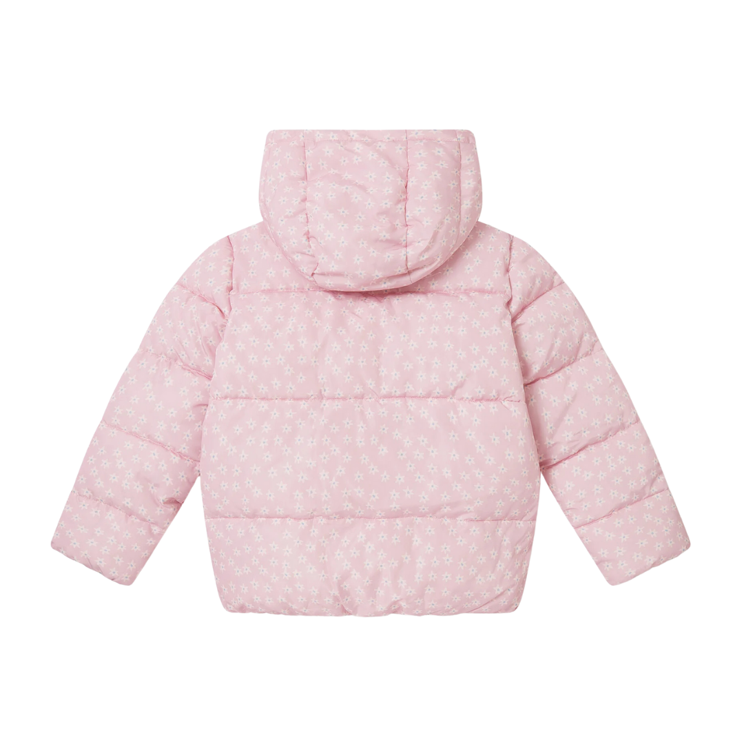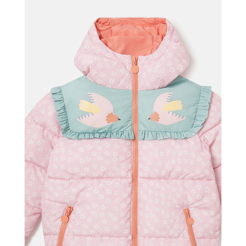 A love for animals can take wing at any age. This puffer coat is made from recycled materials and printed with soaring doves – a symbol of peace. The puffer is hooded and padded with long sleeves, a graphic print, tonal zipper, two pockets and zipper fastening.