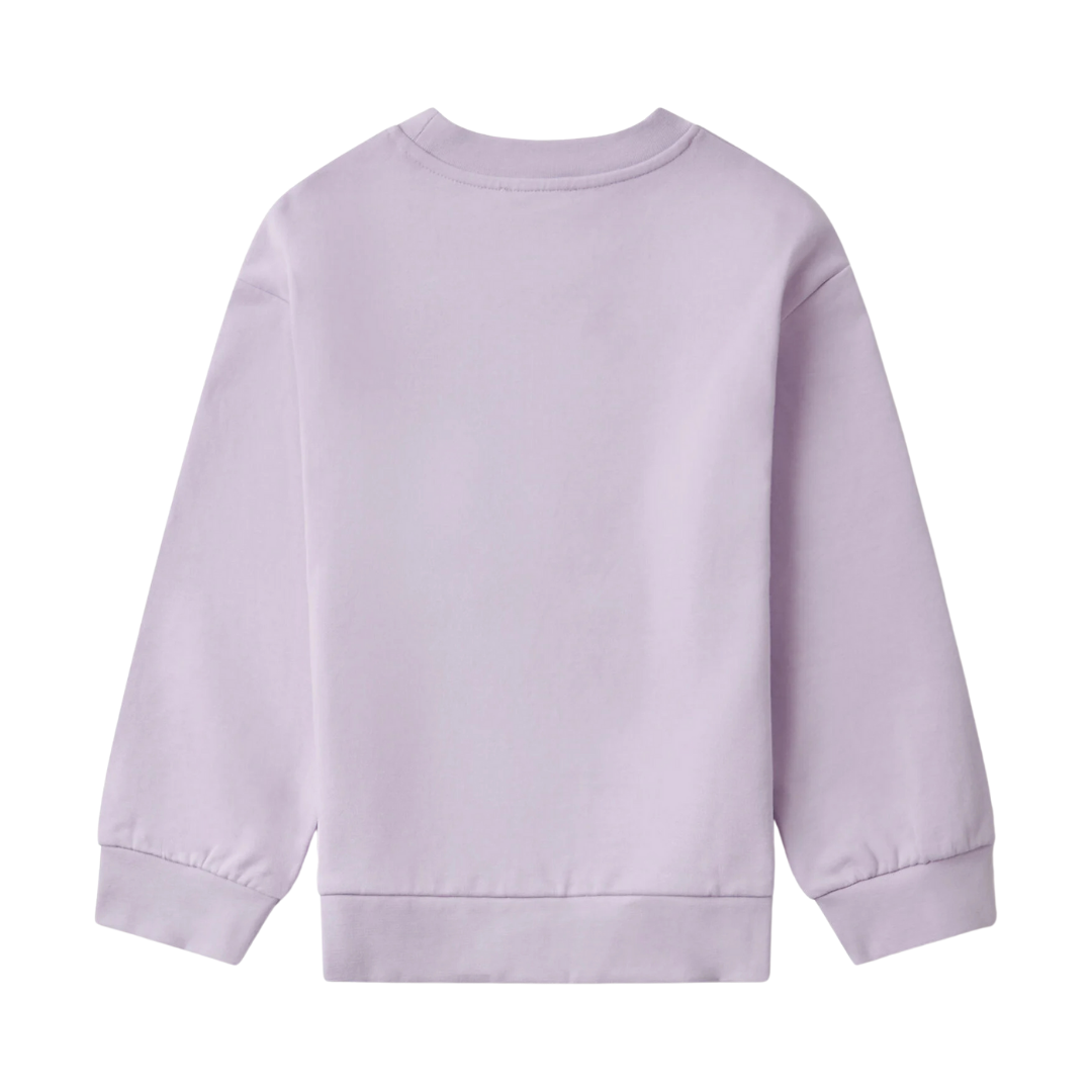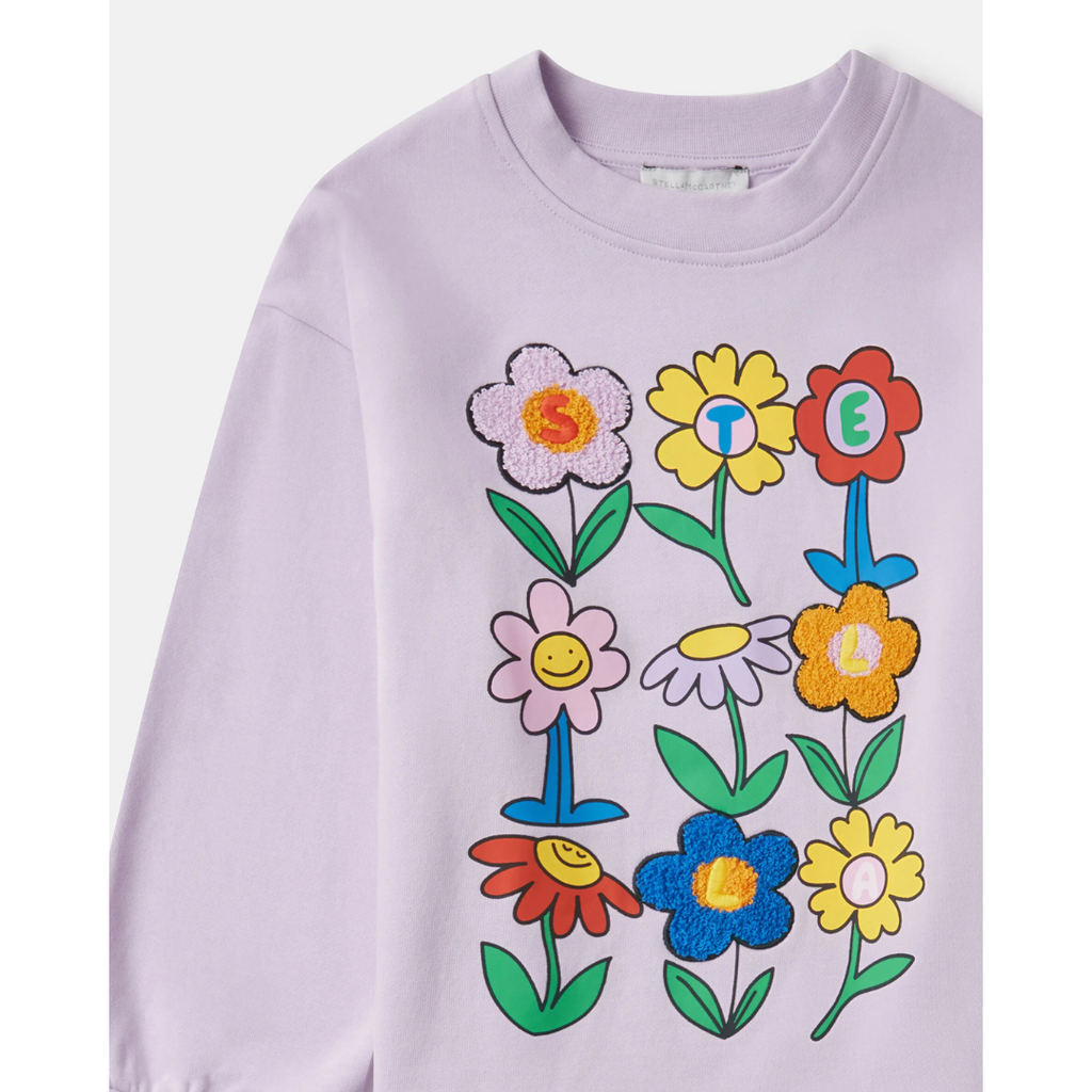 This crewneck sweatshirt is made from soft organic cotton. For Fall/Winter 2025, Stella McCartney Kids is inspired by the love we have for our one shared home – Mother Earth. Smiling flowers, hearts and other earthy friends beam across a collection crafted from 96% conscious materials. The sweater aslo features ribbed trims.