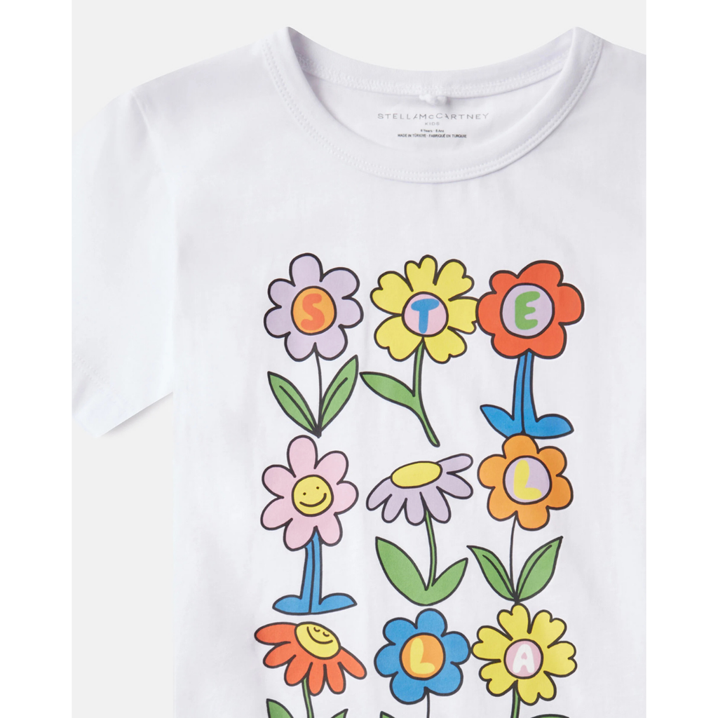 This t-shirt is made from soft organic cotton jersey. For Fall/Winter 2025, Stella McCartney Kids is inspired by the love we have for our one shared home – Mother Earth. Smiling flowers, hearts and other earthy friends beam across a collection crafted from 96% conscious materials. The t-shirt features a crewneck, short sleeves and a flower graphic on the front.