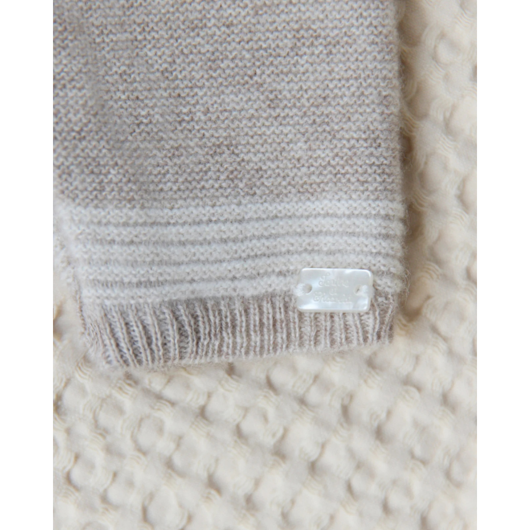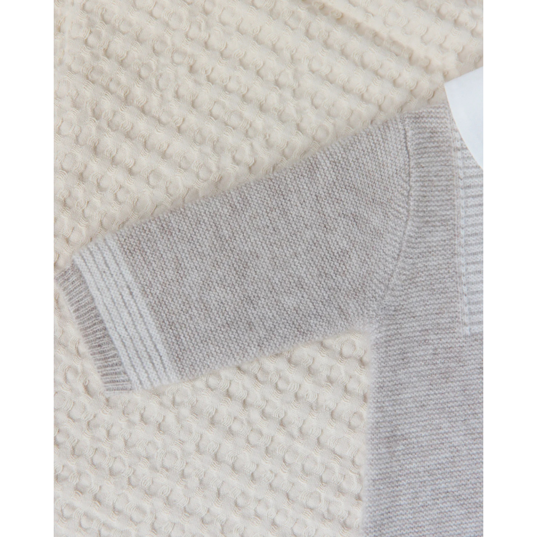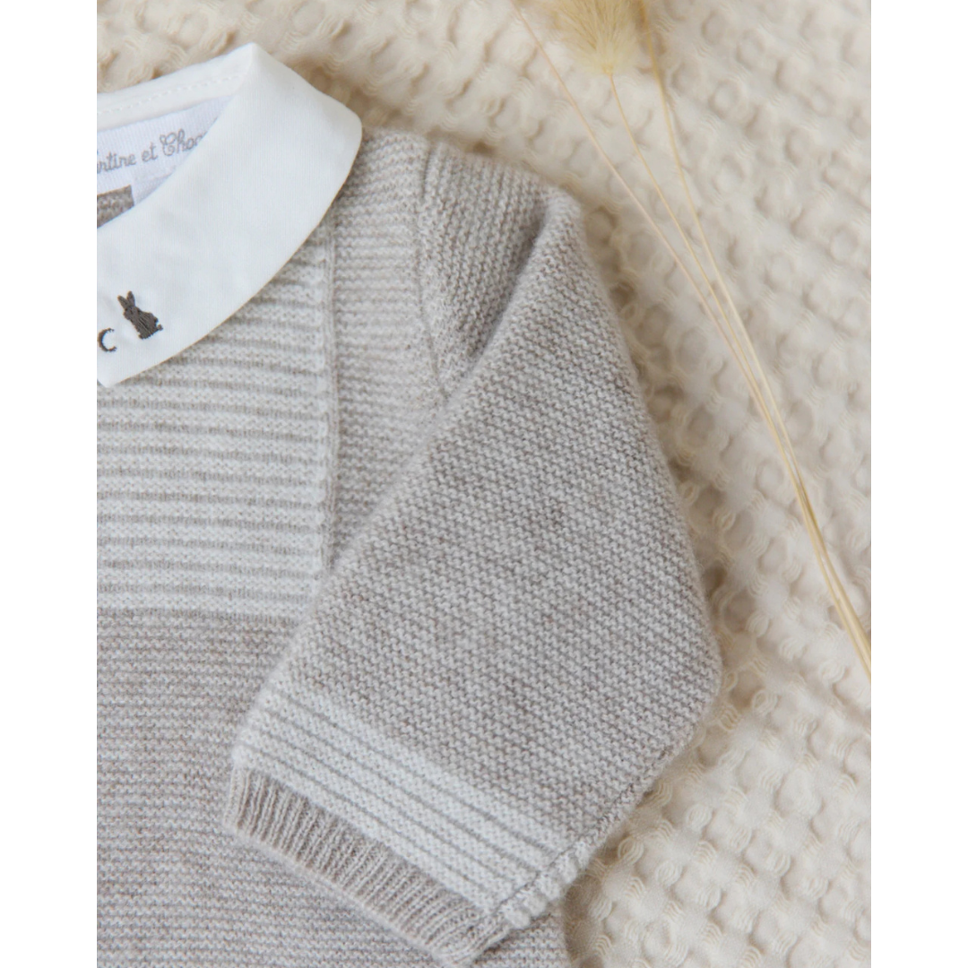 This longall in hunched grey features a pointed collar with delicate embroideries and smocked knitting that adds a refined and elegant touch to this piece. Perfect for the first moments with softness and style.