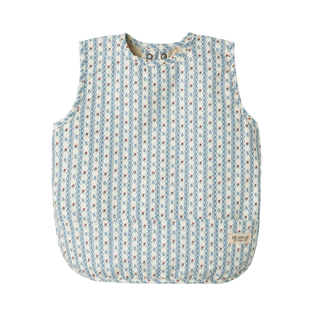 Large bib with button closure at the back. The apron has a water-repellent coating so it is easy to wipe off.