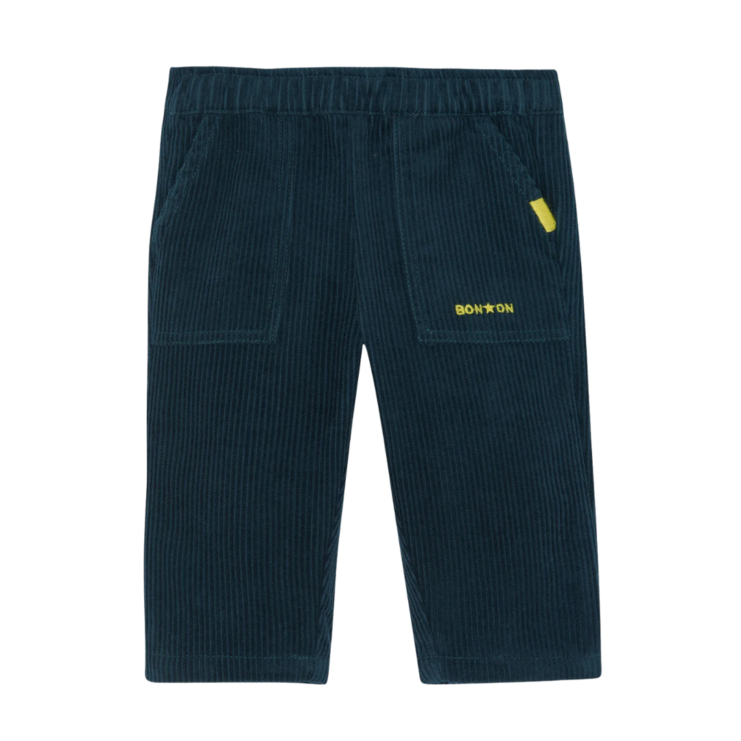 The Darius pnats from the "Winter Tales" collection is a must for small explorers! In Corduroy Blue Lake, it combines style and comfort with its elastic waist. The inscription "Bonton" in Yellow on the PocketBefore brings a fun touch. Perfect for facing the winter cold in style, it goes easily with a cozy jacket to create a warm and adventurous look.