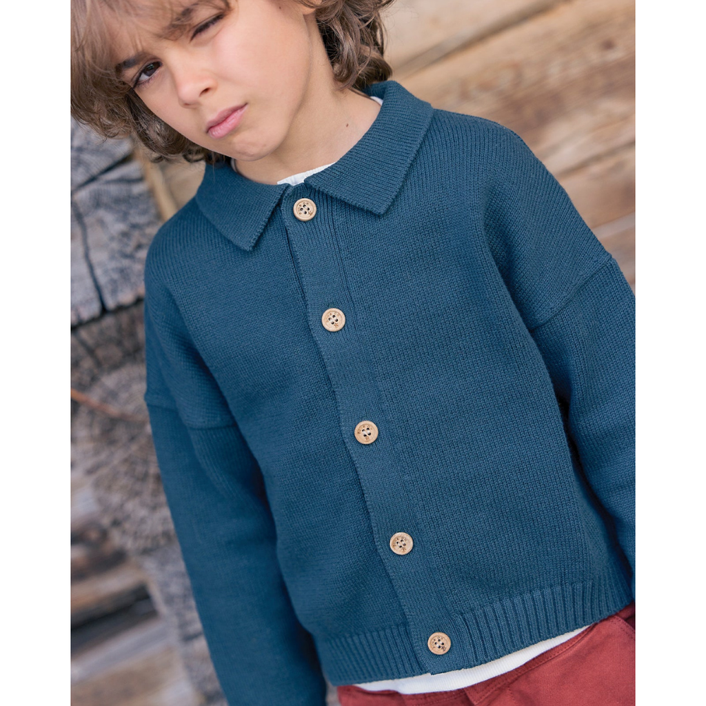 Discover Lucien, a marvel from the “Winter Tales” collection in blue lake! With its pointed collar and large buttons, it ensures a style that is both elegant and warm. Made from 100% cotton, it wraps your little one in warmth and softness.