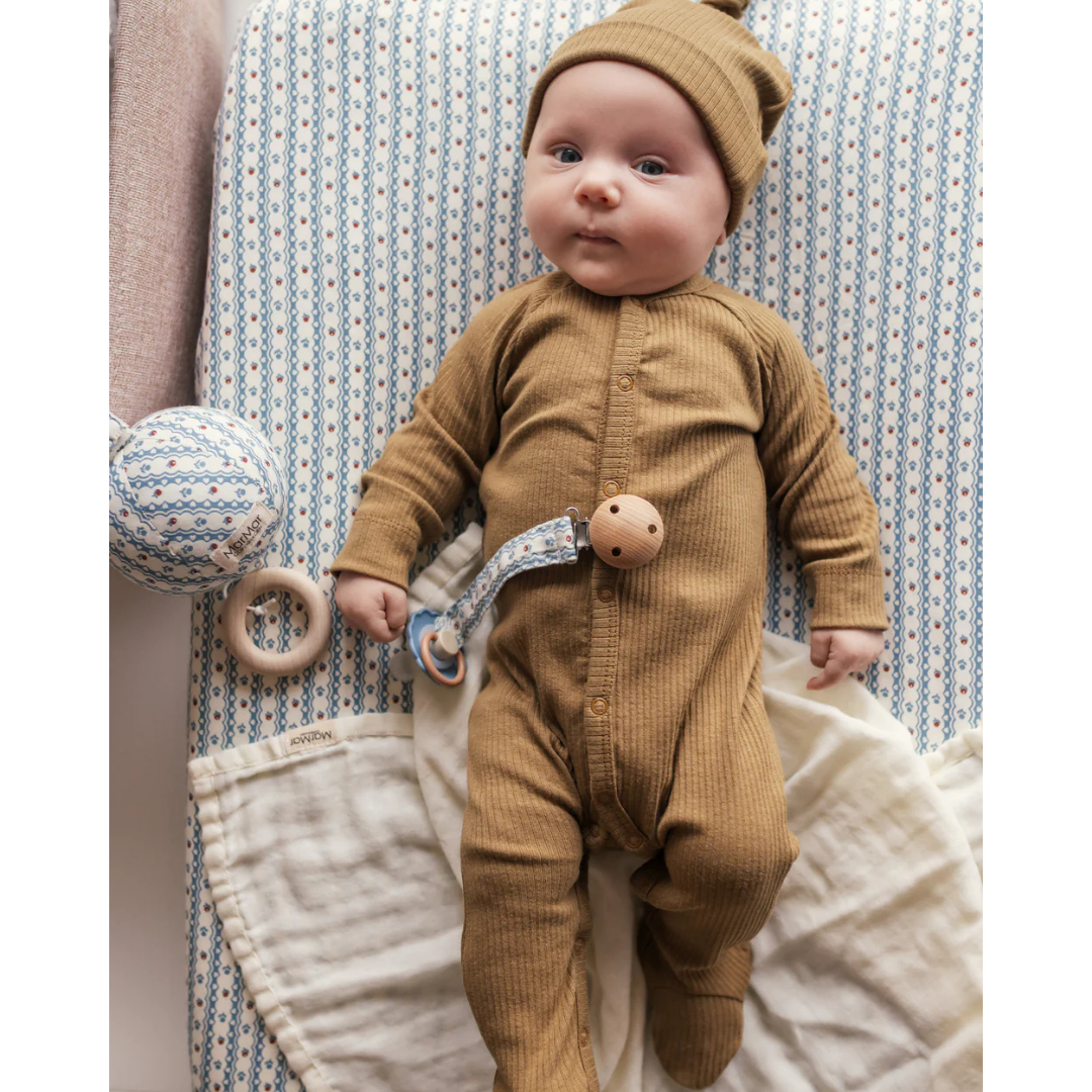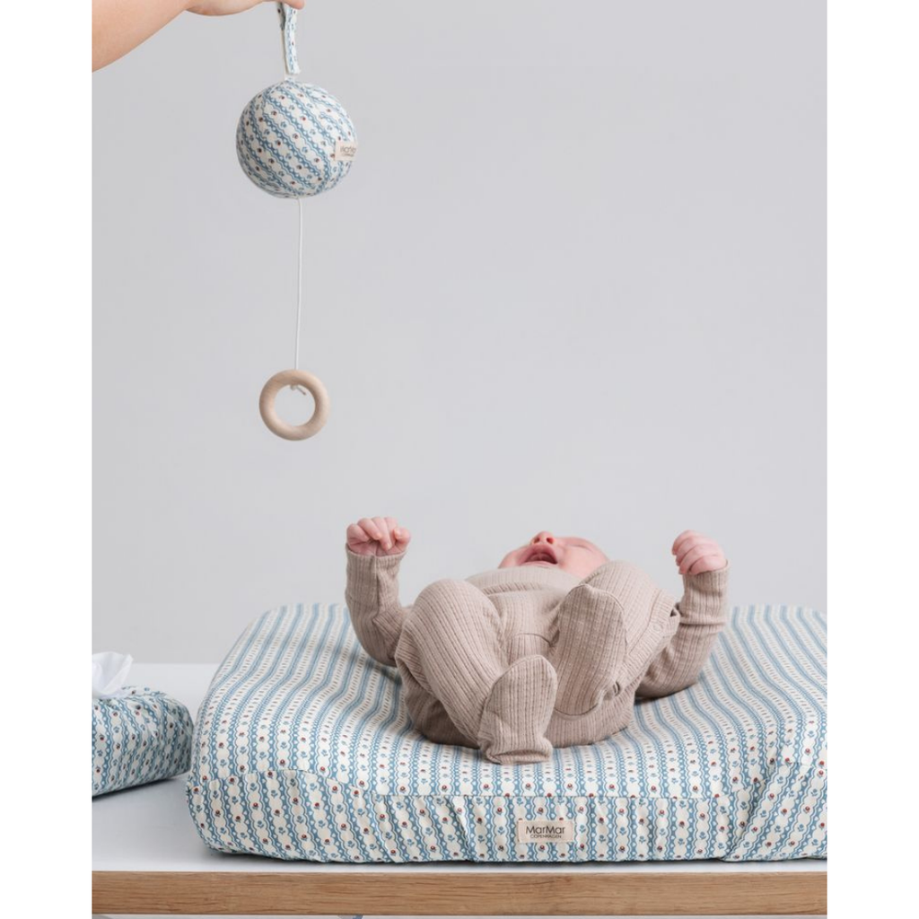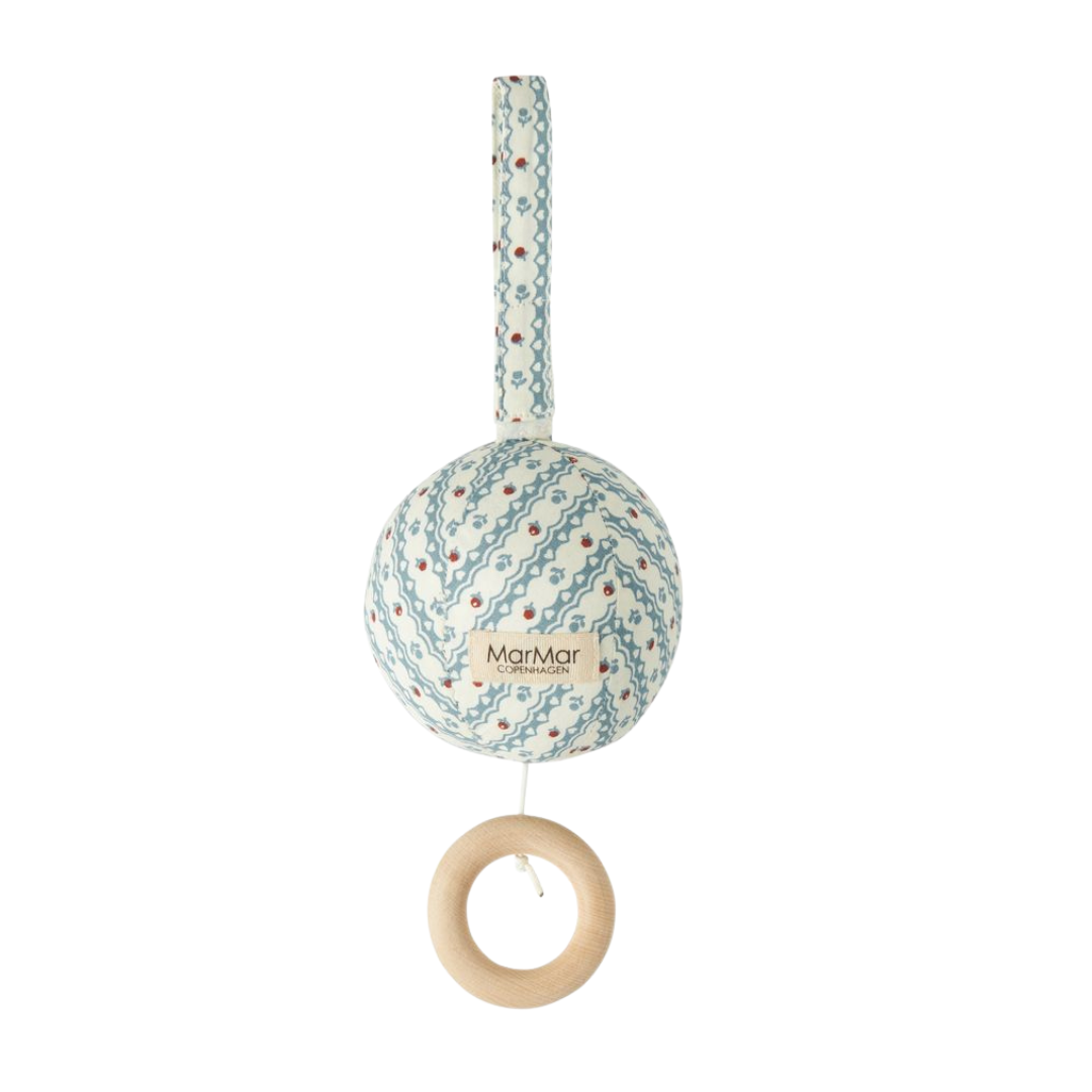 Musical mobile with wooden ring that plays Brahm's Lullaby for your child when you pull the string. It has a Velcro closure so it can be easily placed in different places in the baby's room.