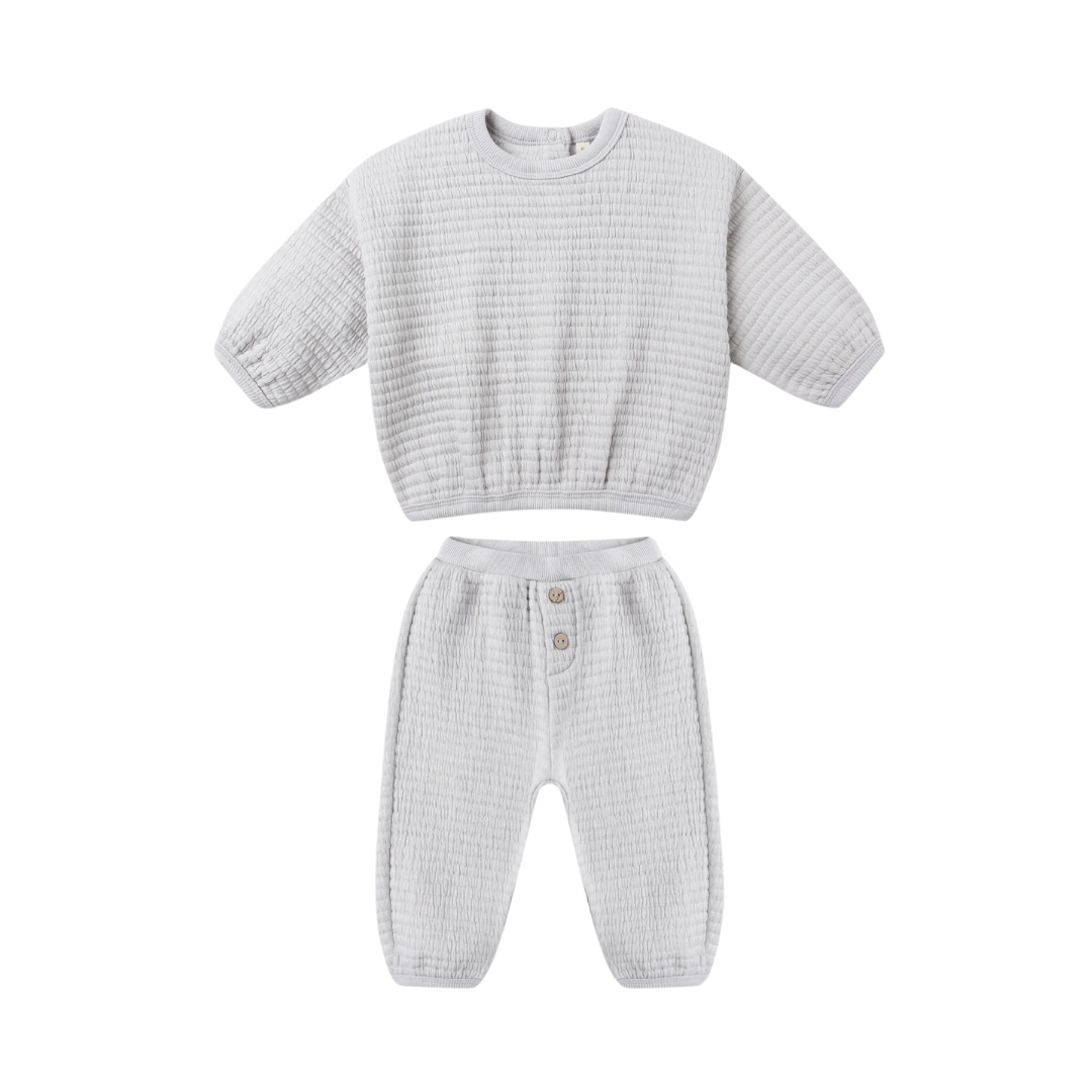 This textured sweat set includes a softest long sleeve top and cozy pants, perfect for everyday wear!