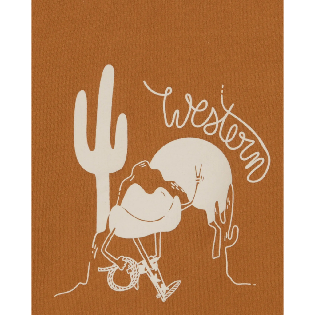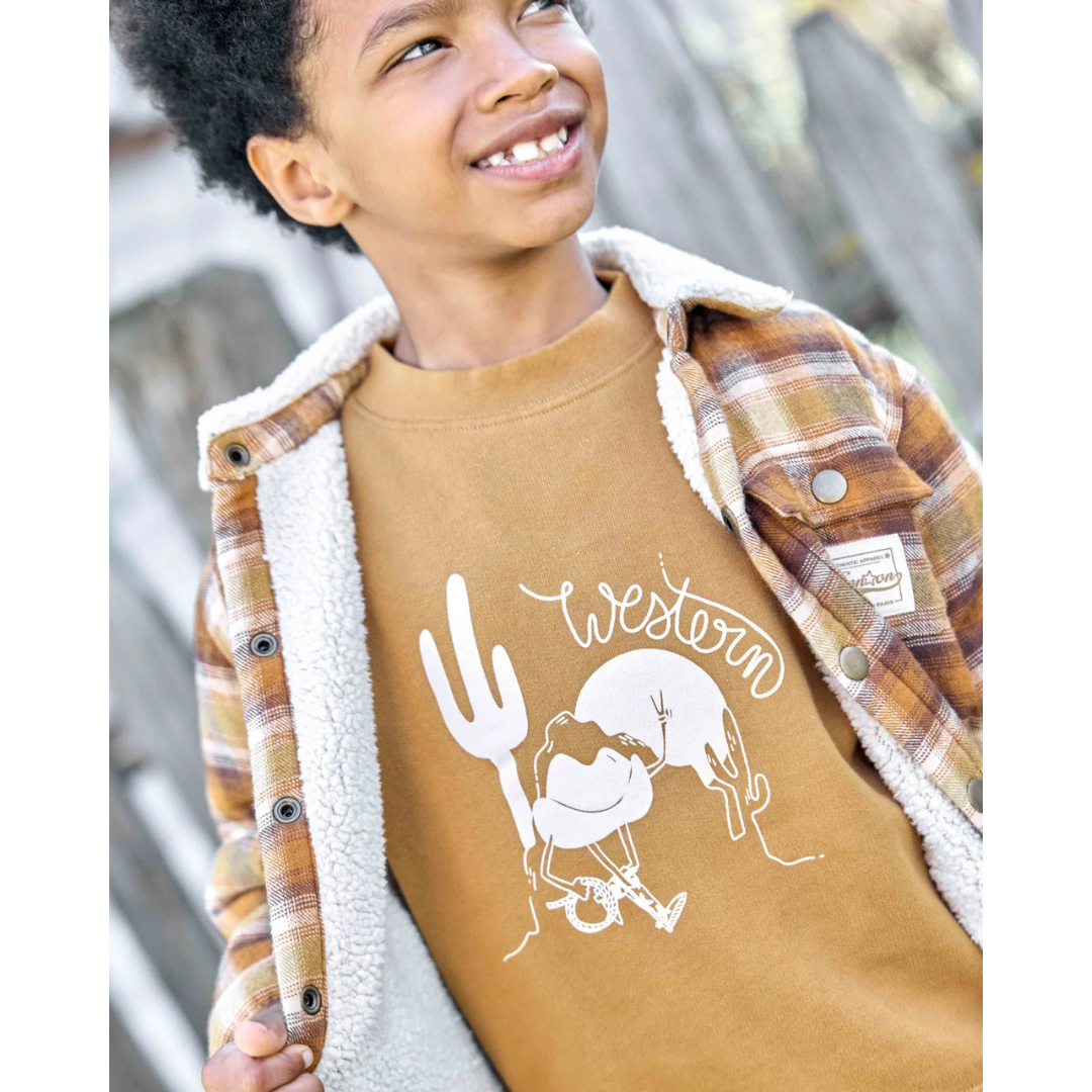 Embark on a western adventure with the Sweatshirt western blade from the "New Barn" collection, in barn brown and decorated with a Illustration ecru western. This Sweatshirt promises comfort and style for young budding cowboys! Perfect for play days or outdoor outings, it pairs wonderfully with denim jeans for an authentic little rancher look.